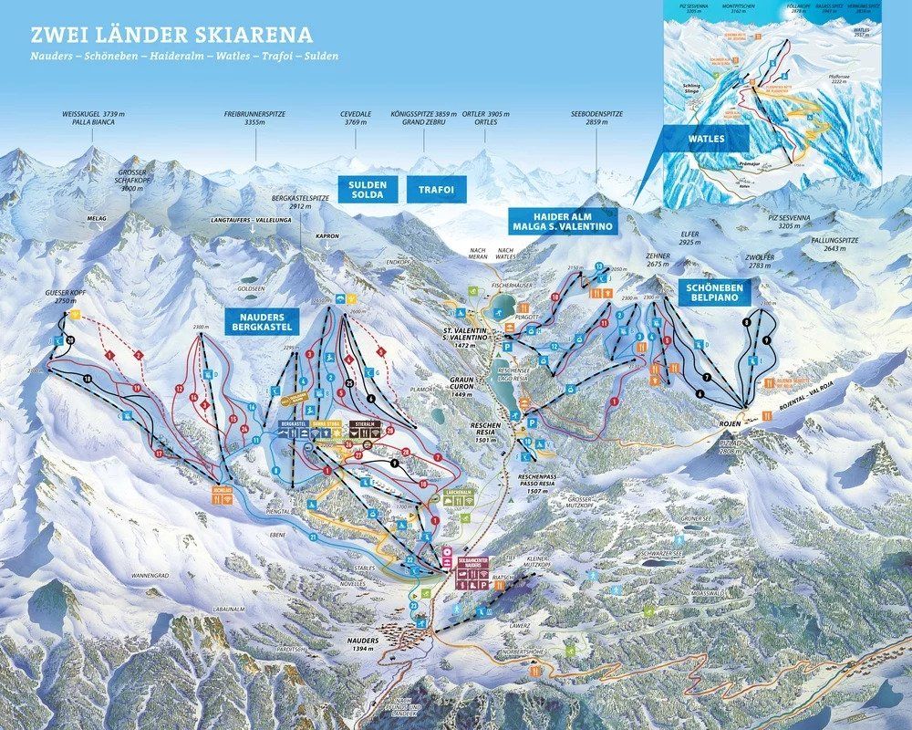Zudem treffen Sie auf familienfreundliche, breite Pisten und hervorragende Skischulen sowie auf Funparks und gemütliche Après-Ski-Hütten. Aber auch Freizeitaktivitäten wie Schneeschuhwanderungen oder auch Snowkiten auf dem Reschensee kommen hier nicht zu kurz.
